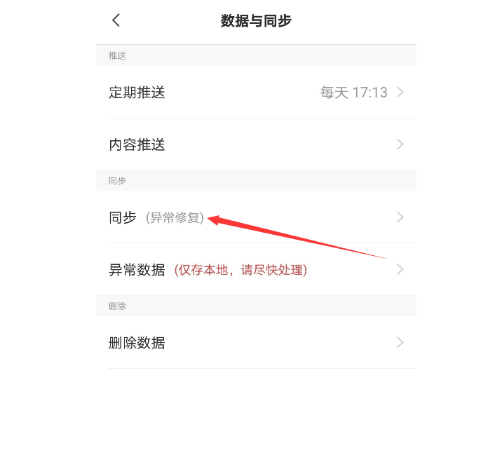 敬业签手机版手动同步方法;打开手机版云便签,点击界面底部“我的”,选择“数据与同步”,进入数据与同步页面,选择“同步(异常修复)”,进行强制云同步操作;