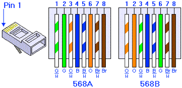 - T568A:绿白、绿、橙白、蓝、蓝白、橙、棕白、棕