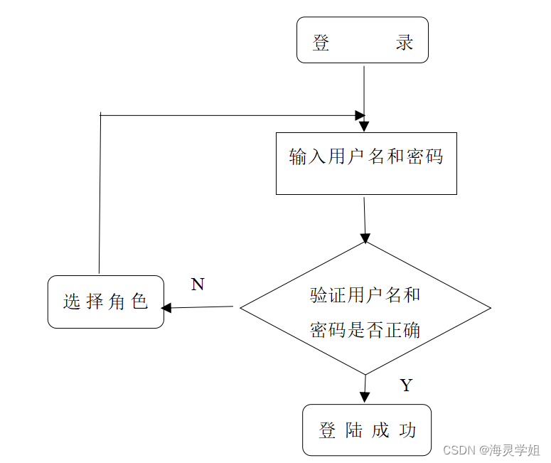 运行系统,首先进入登录界面,按照登录界面的要求填写相应的“用户名”和“密码”以及选择角色,点击“登录”然后系统判断填写是否正确,若正确进入相应的界面,具体流程如图5-9所示。