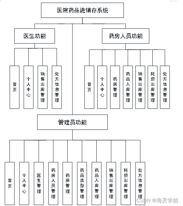 医院药品进销存系统功能模块的结构图,如图4-1所示: