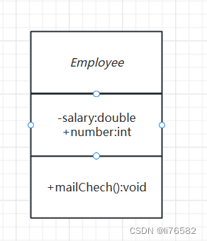 具体类在类图中用矩形框表示,矩形框分为三层:第一层是类名字。第二层是类的成员变量;第三层是类的方法。成员变量以及方法前的访问修饰符用符号来表示: