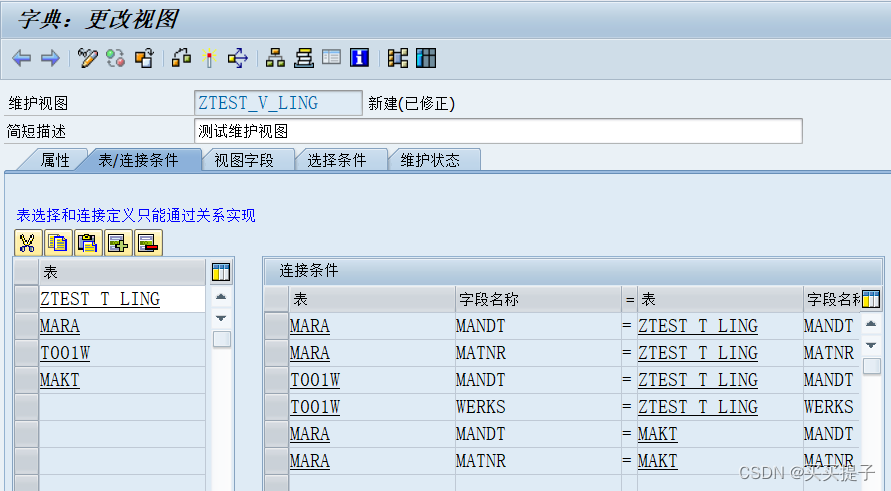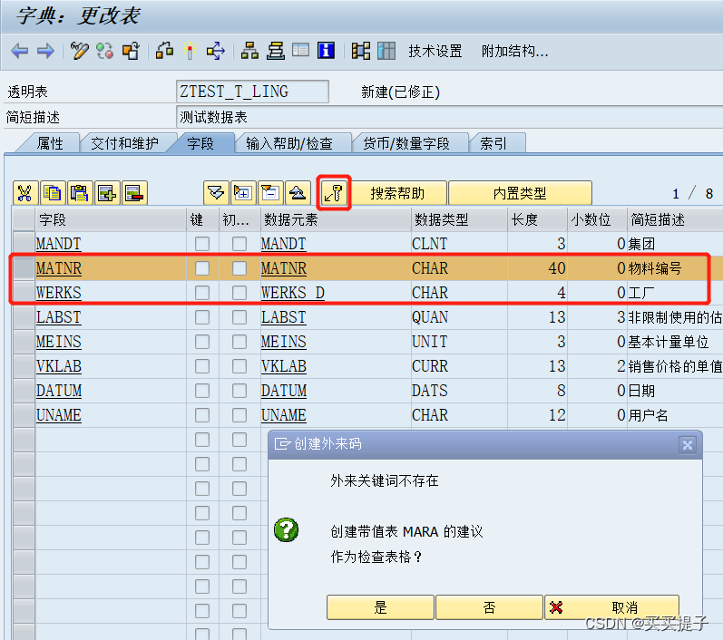 其中行项目表中的“EBELN”字段需要创建一个外键,与抬头表进行关联。