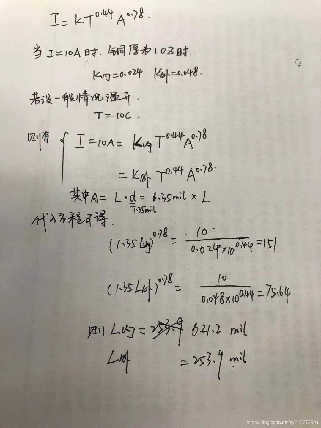 根据公式计算,在铜箔厚度为1盎司的情况下,若需通过10A的电流,计算过程如下: