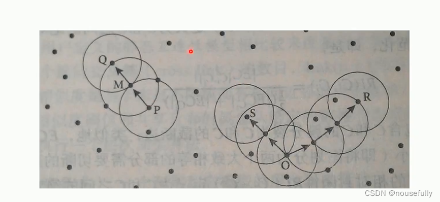 3.反复寻找这些核心点直接密度可达(之后可能是密度可达)的点,将其加入到相应的簇,对于核心点发生"密度相连”状况的簇,给予合并。