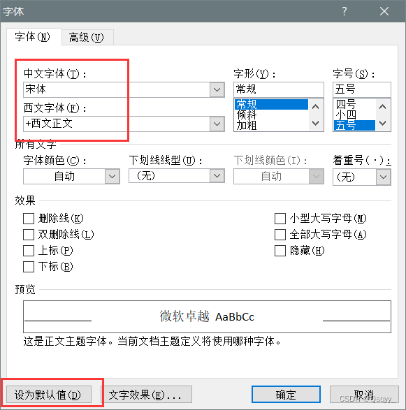 2.设置好想要使用的默认字体格式-点击“设为默认值”