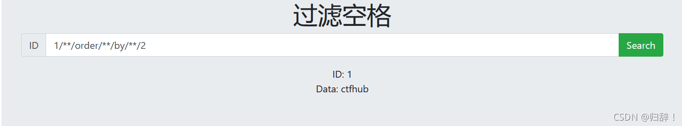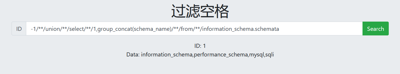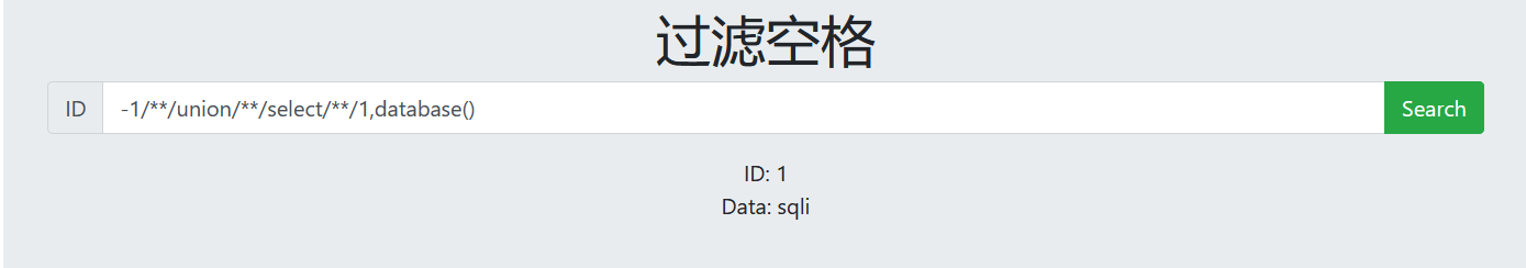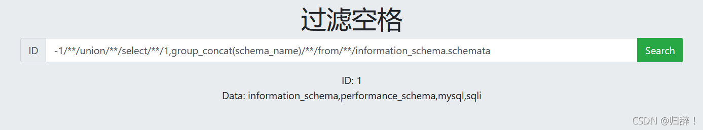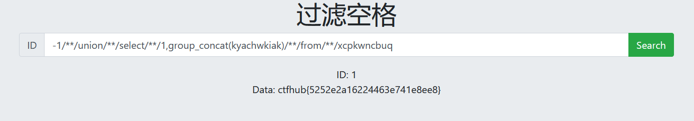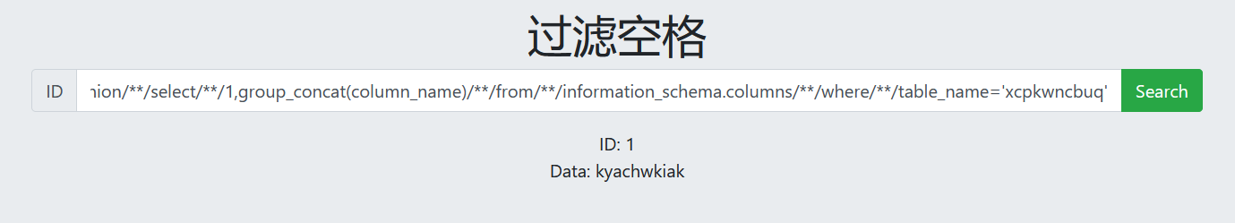 2、根据题目,过滤掉了空格,可以尝试用注释符/**/替换空格,实现绕过