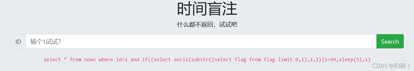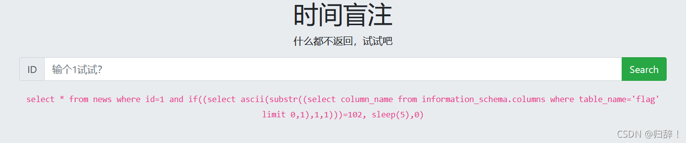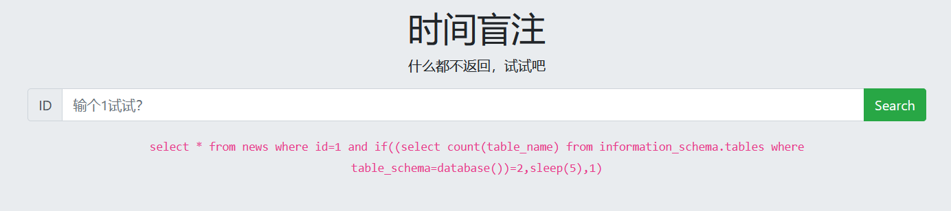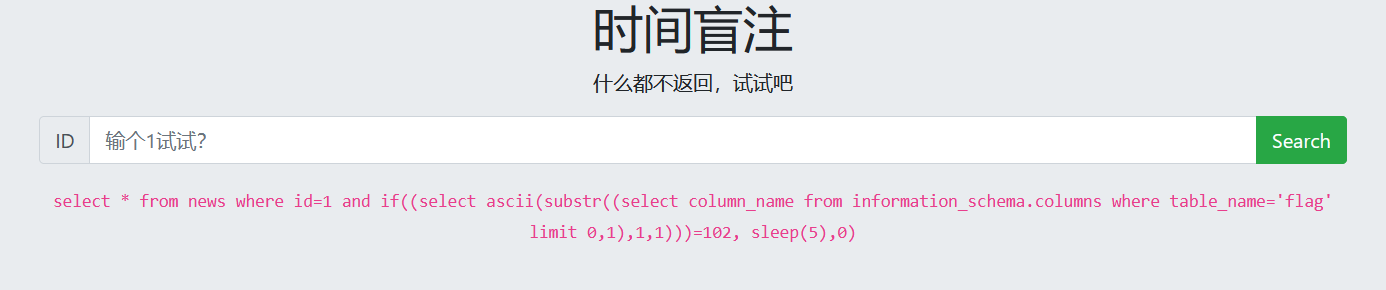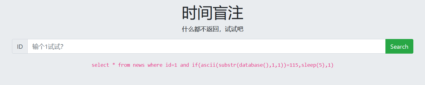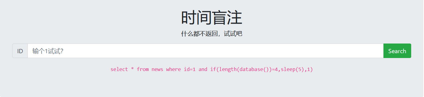 无论输入什么,都没有回显,尝试使用时间盲注来获取数据库信息