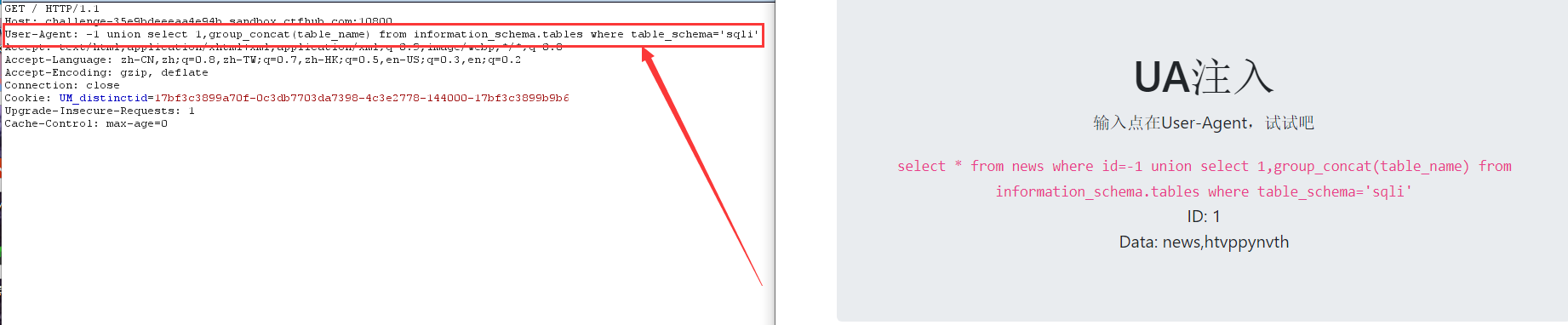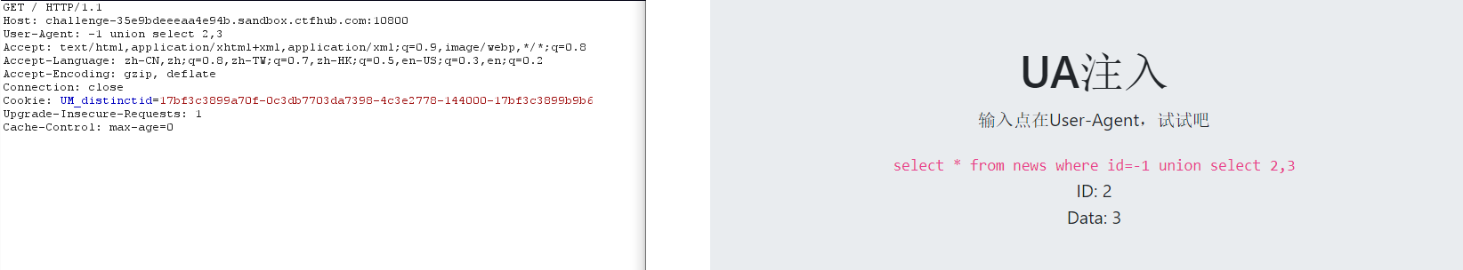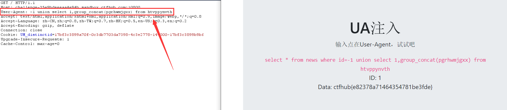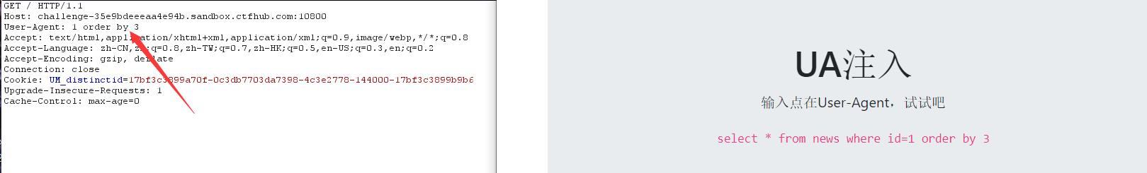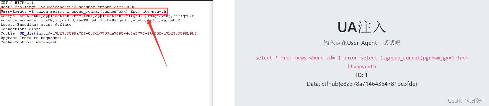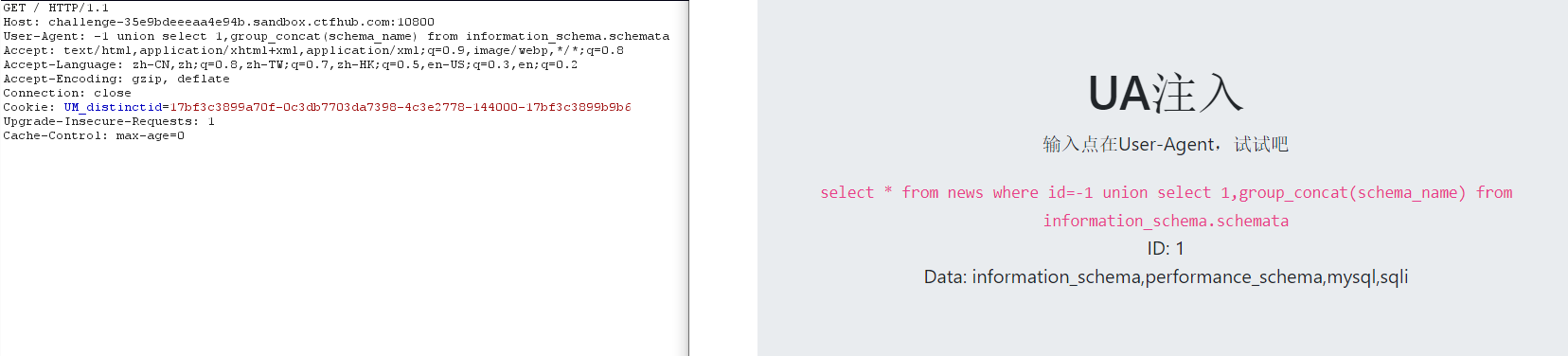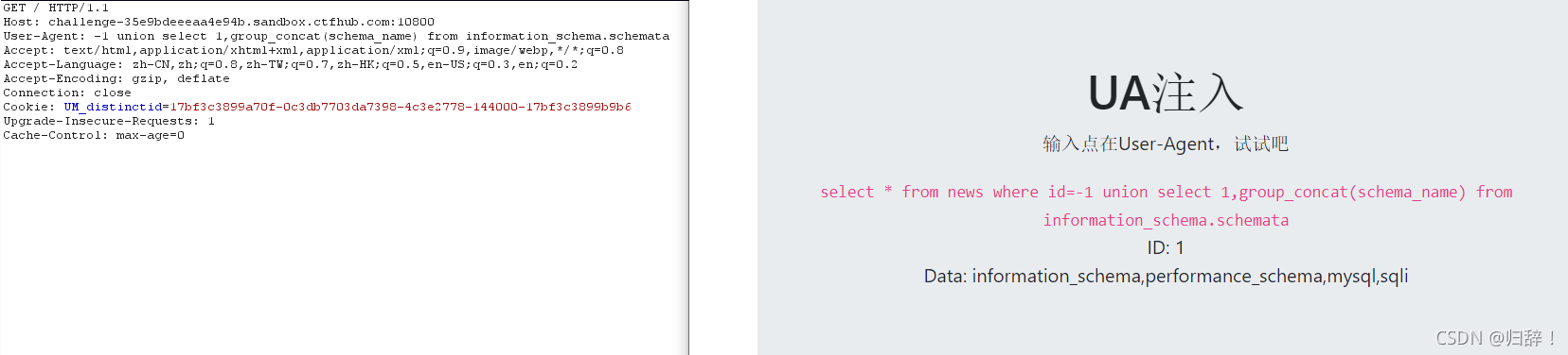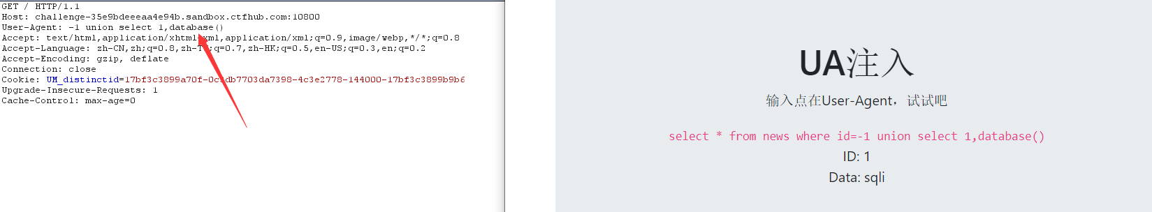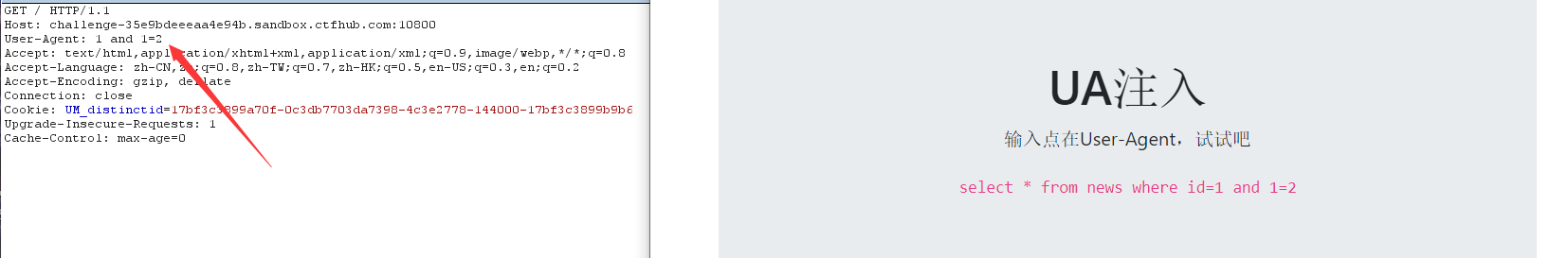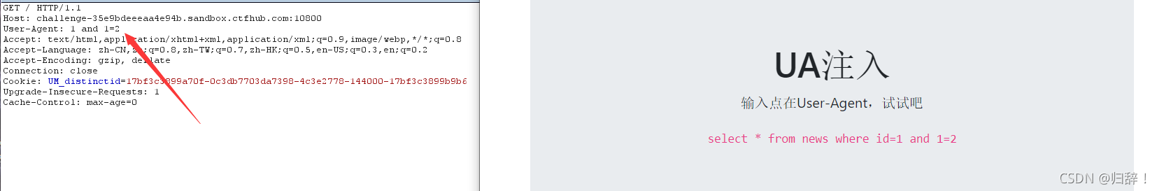 1、UA注入,即User-Agent,利用burpsuite抓包来修改数据包实现注入