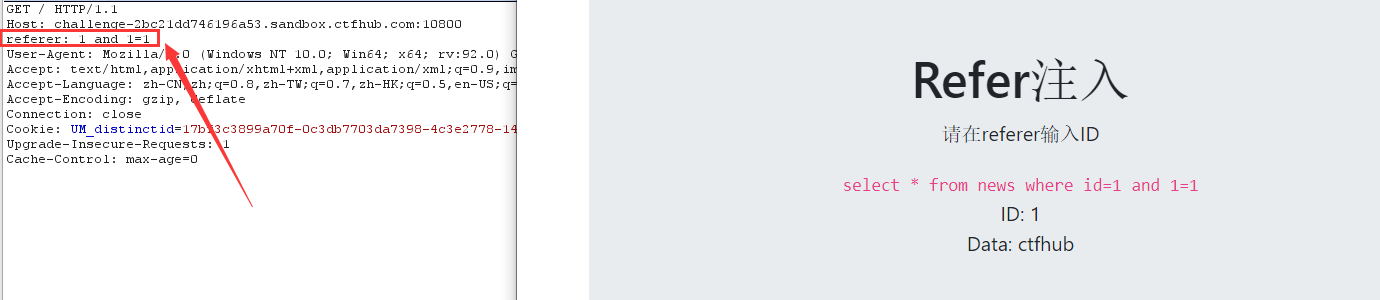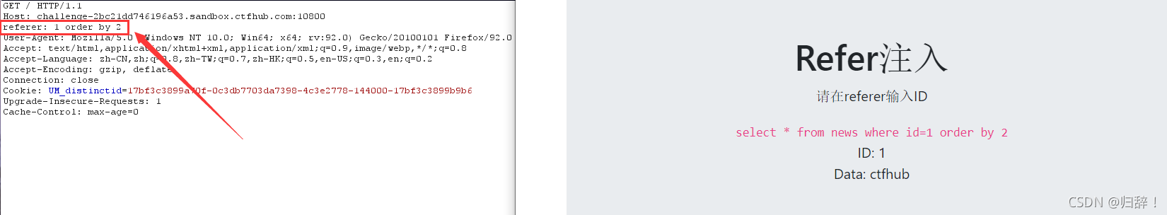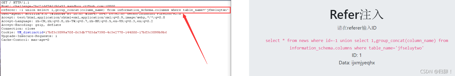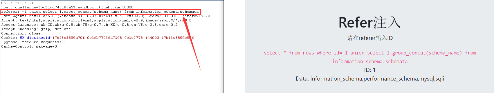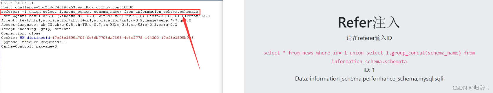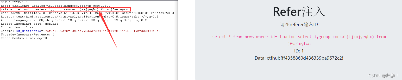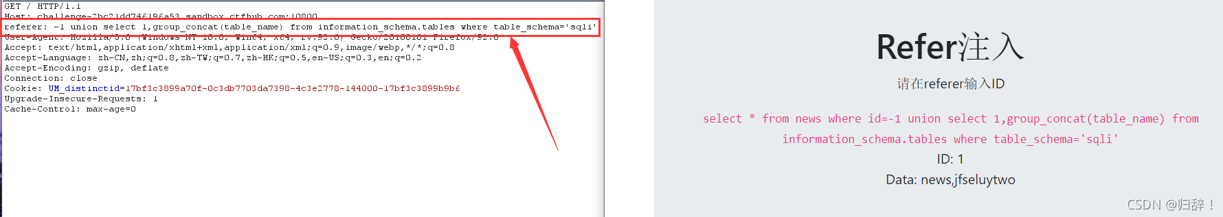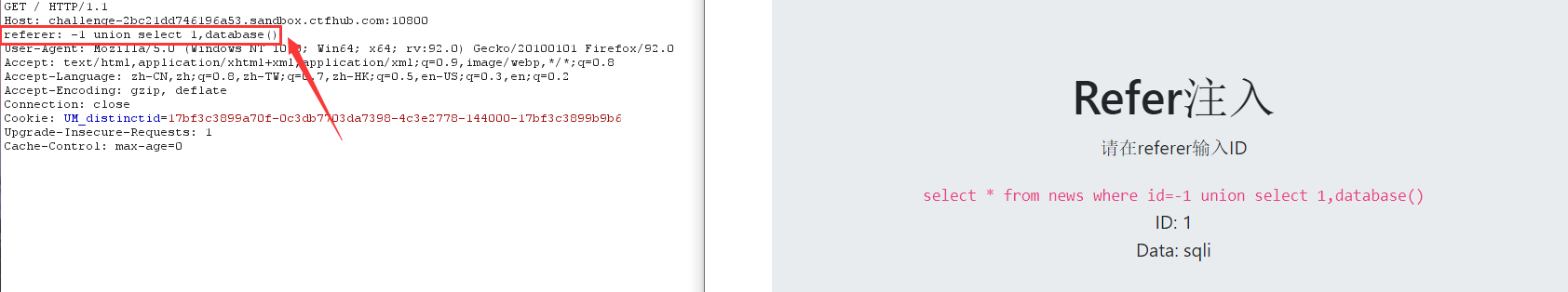 1、Refer注入,利用burpsuite抓包来修改数据包实现注入