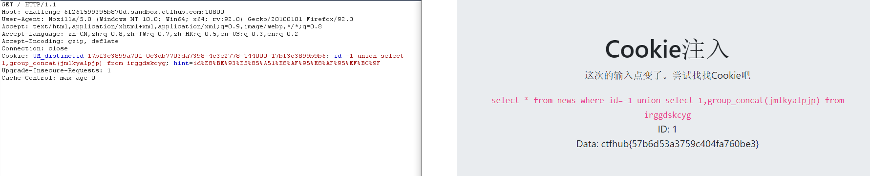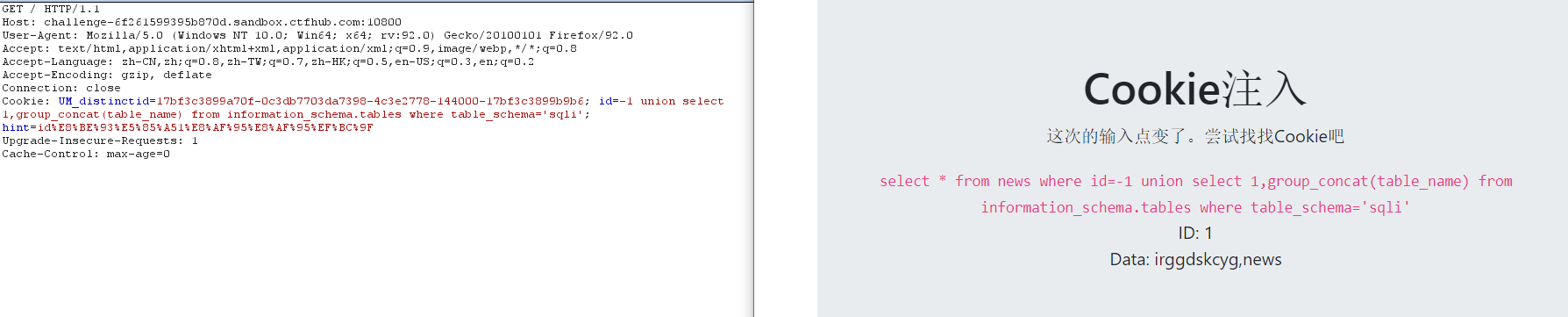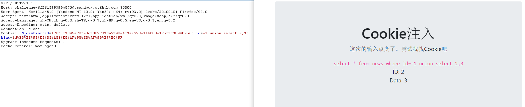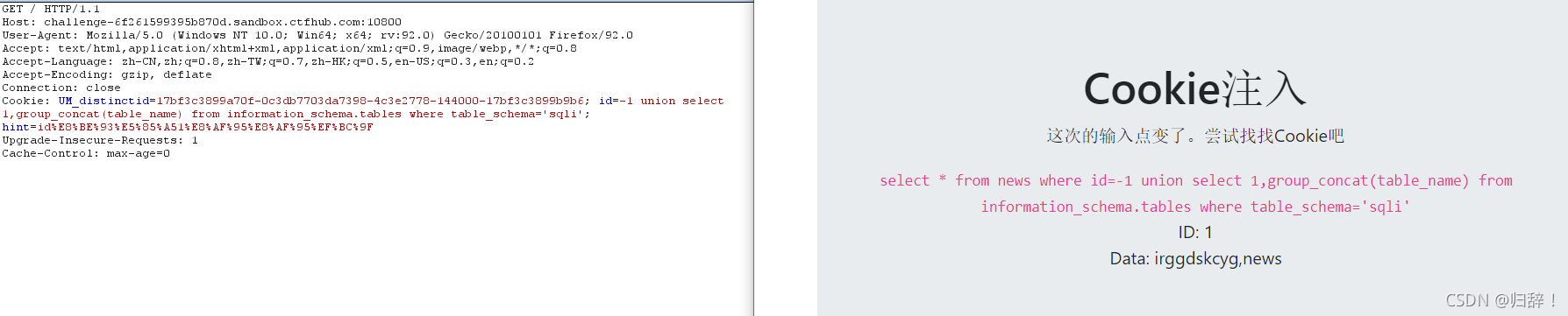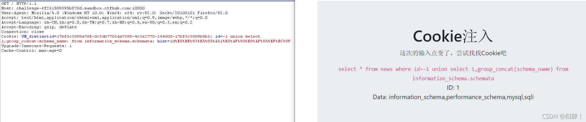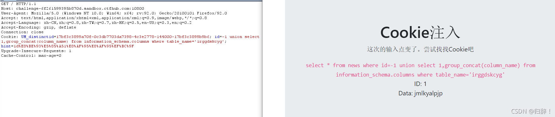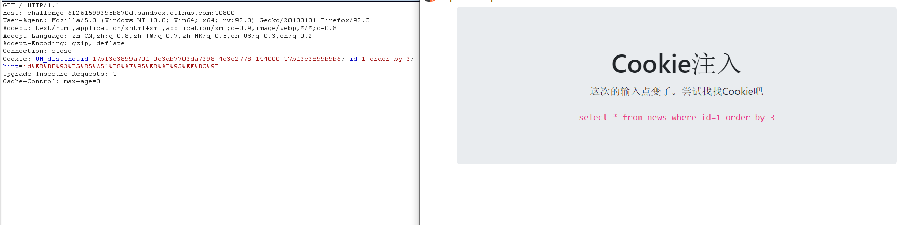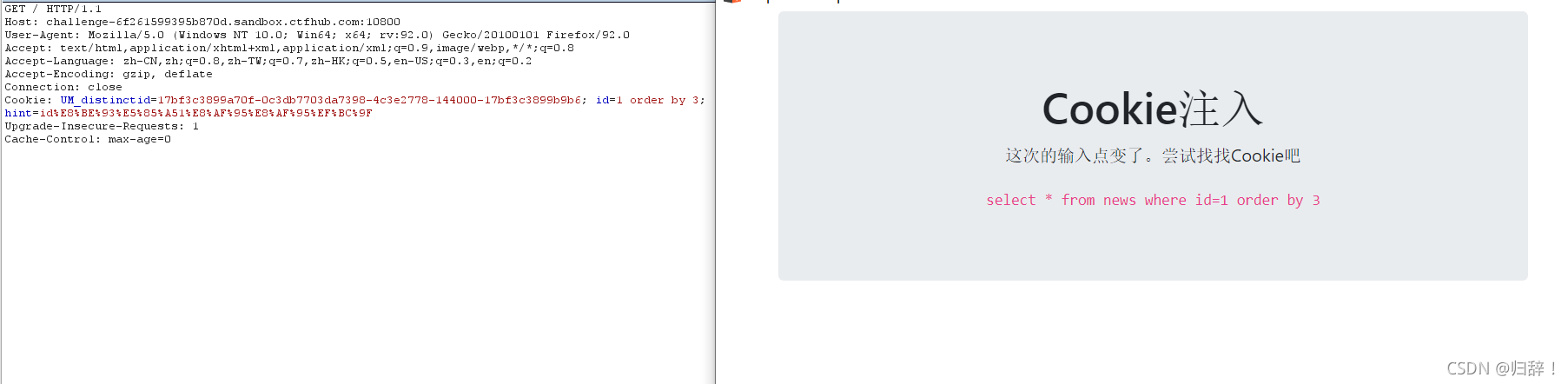 1、Cookie注入,利用burpsuite抓包来修改数据包实现注入