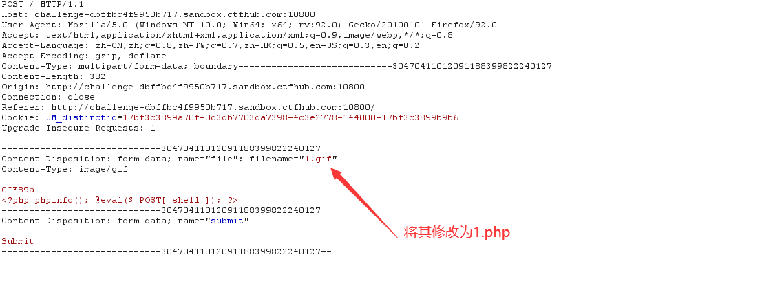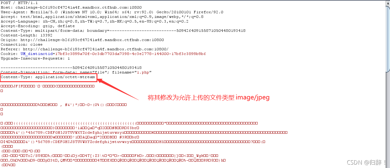 2、MIME绕过,只验证Content-type,抓包将Content-type修改为允许上传的文件类型即可