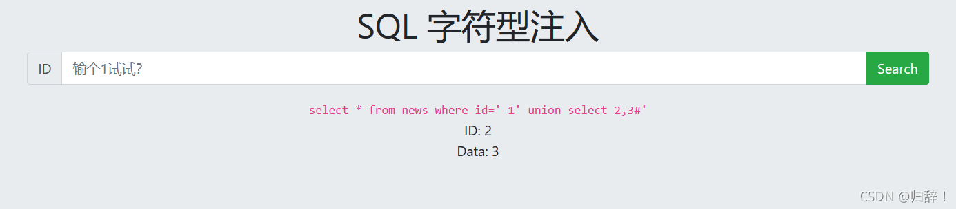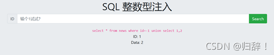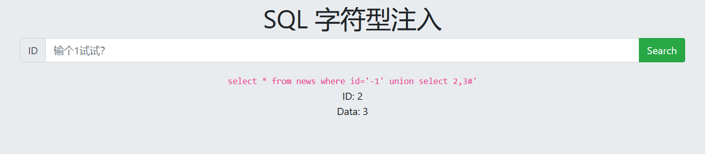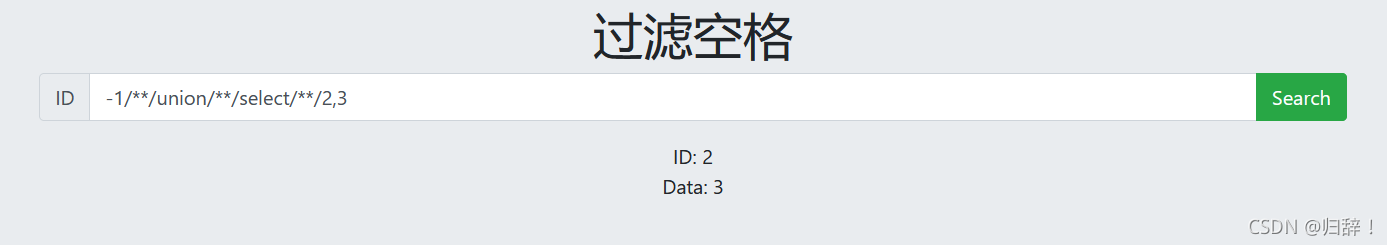 -1/**/union/**/select/**/2,3 ID,Data都是显示位