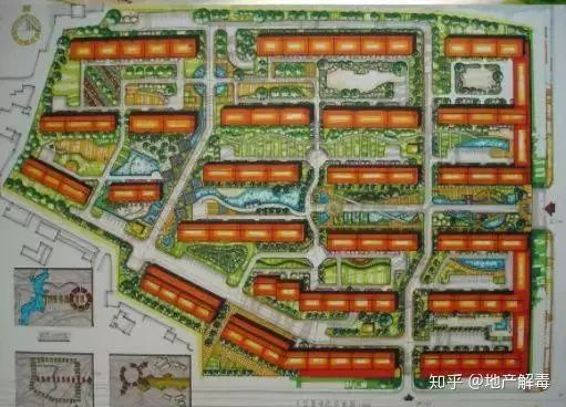 你要找到你想买小区的具体位置,看看周边有没有大型的配套。一般来说,浅黄色代表住宅、红色代表商业,绿色代表公园。(有些规划图比较细致,比如代表中小学的橙色,也会注明)