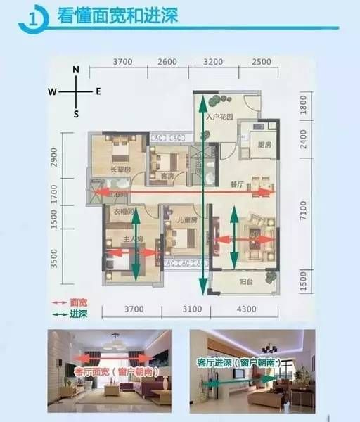 关于得房率、公摊面积,我们是没有办法知道确定的数值,这里猫腻很多。而面宽是可以测量的,是判断一个户型好坏的最直接的指标。
