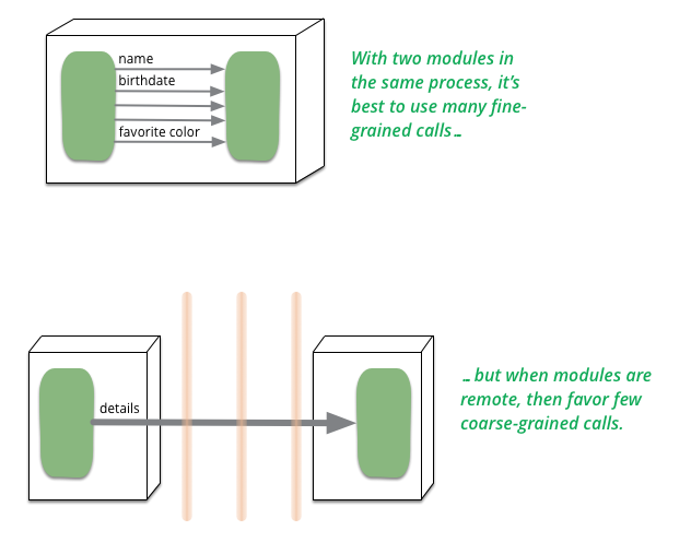 粗粒度服务:服务的粒度要稍微的抽象和粗粒度一些,因为服务是基于业务场景的抽象和设计,不能做成是直接把数据库的增删改查暴露出来成接口和方法,而是应该隐藏这些细节,考虑清楚从业务和客户角度来看,哪些步骤和过程,是必须封装起来的,细节隐藏掉,然后对外提供的就是粗粒度的服务,而在单体系统的时候,我们可以直接调用这些细节,无需过多考虑。