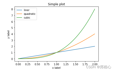 x = np.linspace(0,2,100)#在[0,2]区间上平均取100个数