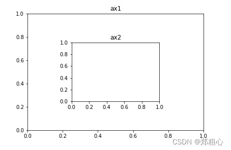 ax1.set_title("ax1")ax2 = fig.add_axes([0.3, 0.3, 0.4, 0.4]) #代表左边空出30%,底部空出30%,宽度为40%,高度为40%