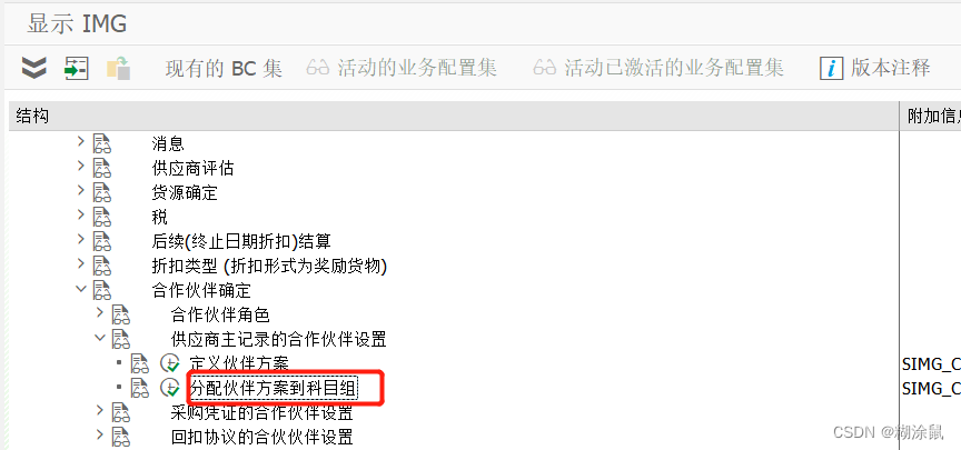 路径:IMG--物料管理--采购--合作伙伴确定--供应商主记录的合作伙伴设置--分配伙伴方案到科目组
