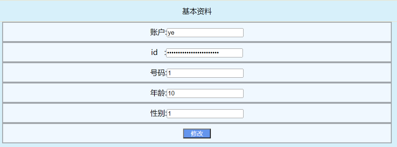 在这里我首先想到的是和我的修改菜品采用同一种方法,点击修改之后在下方在显示一个相同的盒子,而未想到自己本身写的显示资料的就是一个输入框,可以直接在上面修改并保存,无须再重复写一个新的,否则不仅会显得不好看,也缺乏了用户体验感,增加了代码的长度。在以后的考核中就需要避免这些情况。