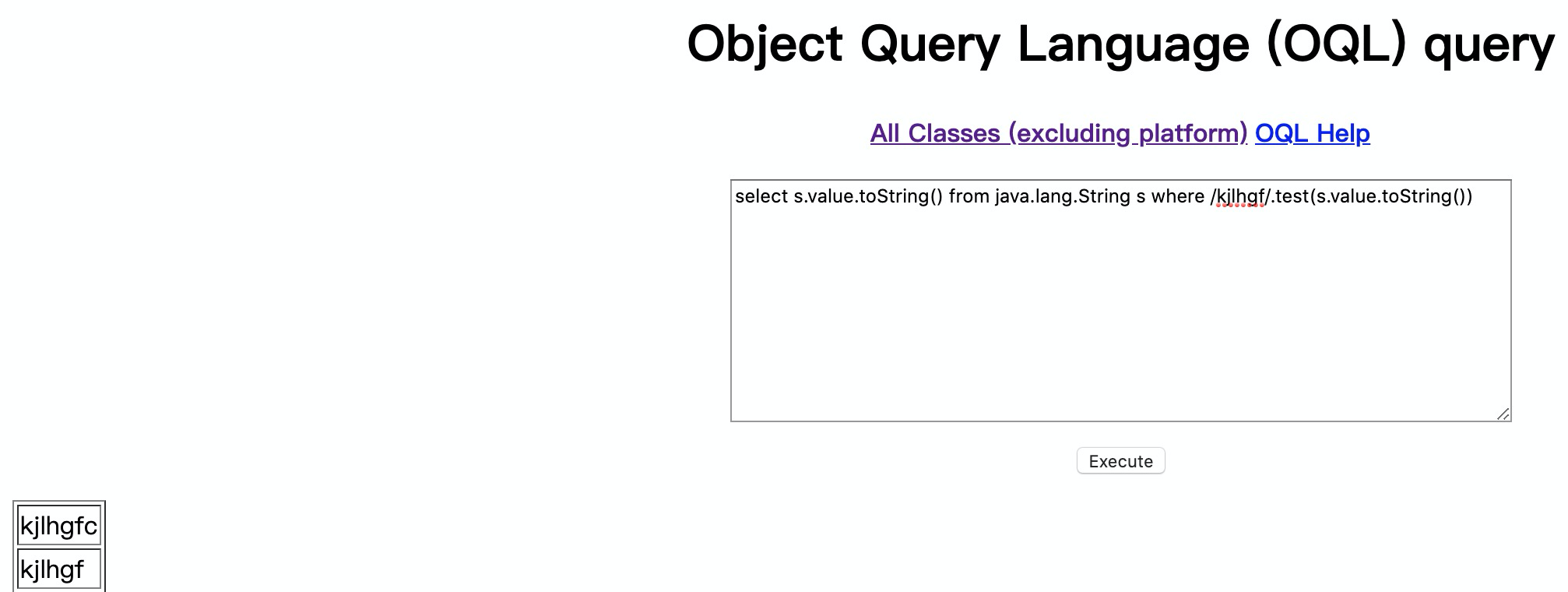 kjlhgfc 查询结果只有一个 说明只在堆中存在,而字符串常量池中保存的是引用地址