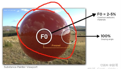我们以图为例,我再次假设我们从grazing angle处看向F0旁边的白圈里的点,即我们的观察方向与表面法线接近垂直,我们代入公式考虑: