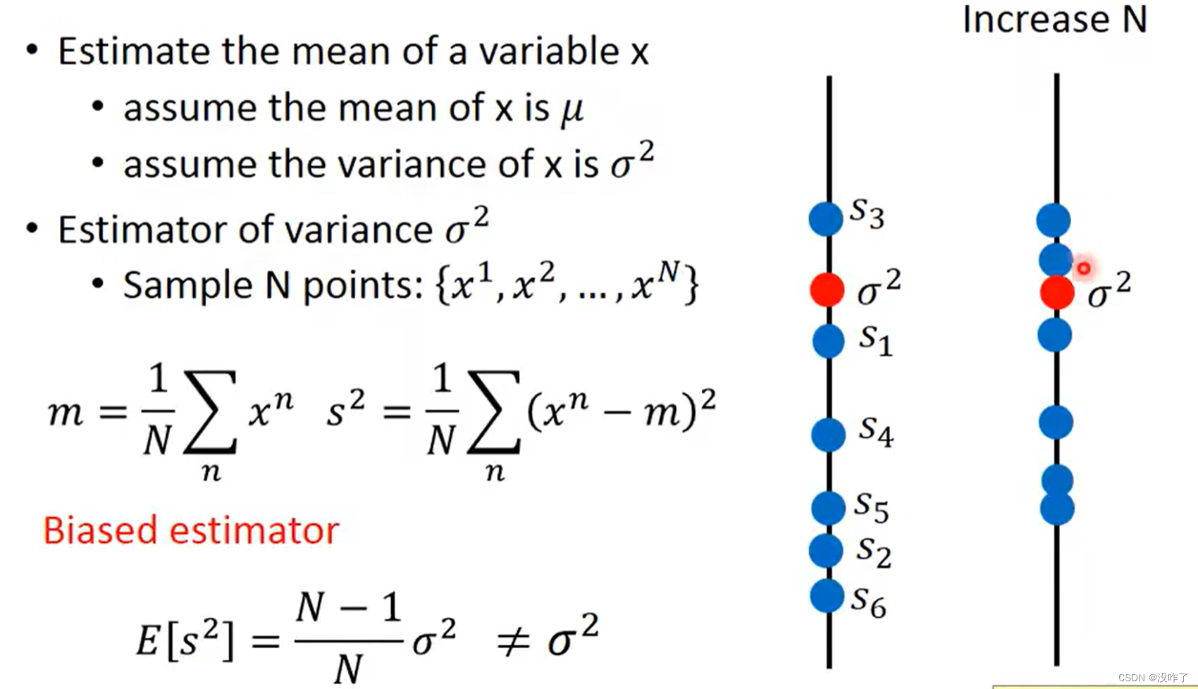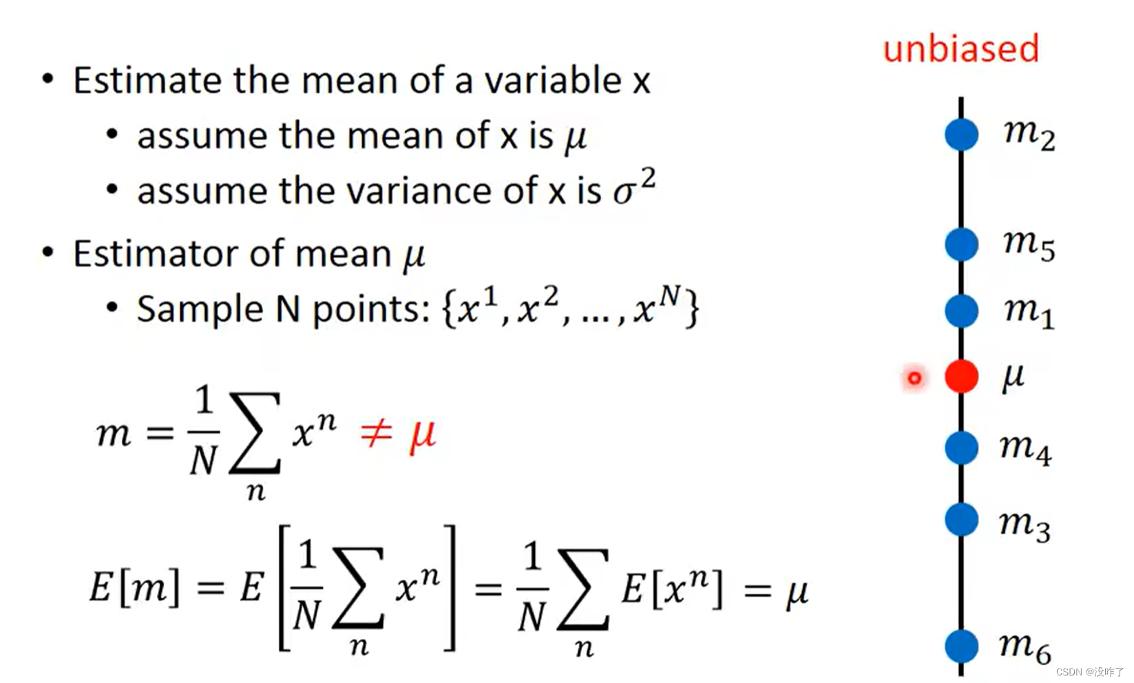 计算平均值 m,如果计算很多组的 m ,然后求 m 的期望。这个估计是无偏估计(unbiased),