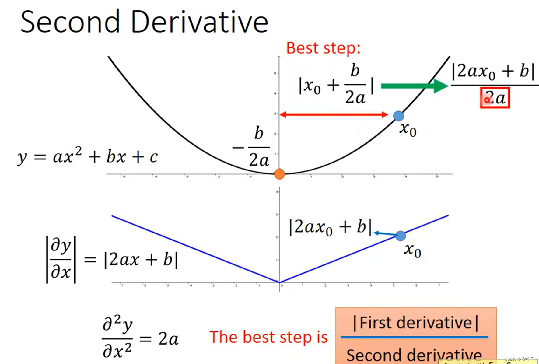 还有个分母 2a 。对function进行二次微分刚好可以得到2a。即不止和一次微分成正比,还和二次微分成反比。最好的step应该考虑到二次微分。