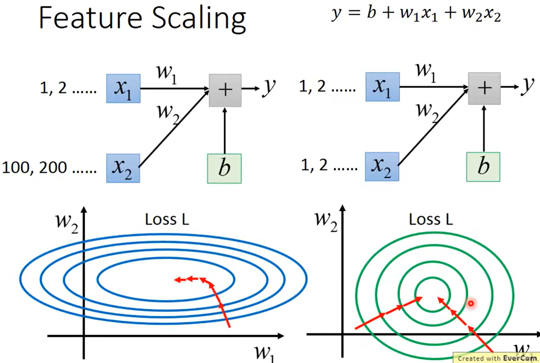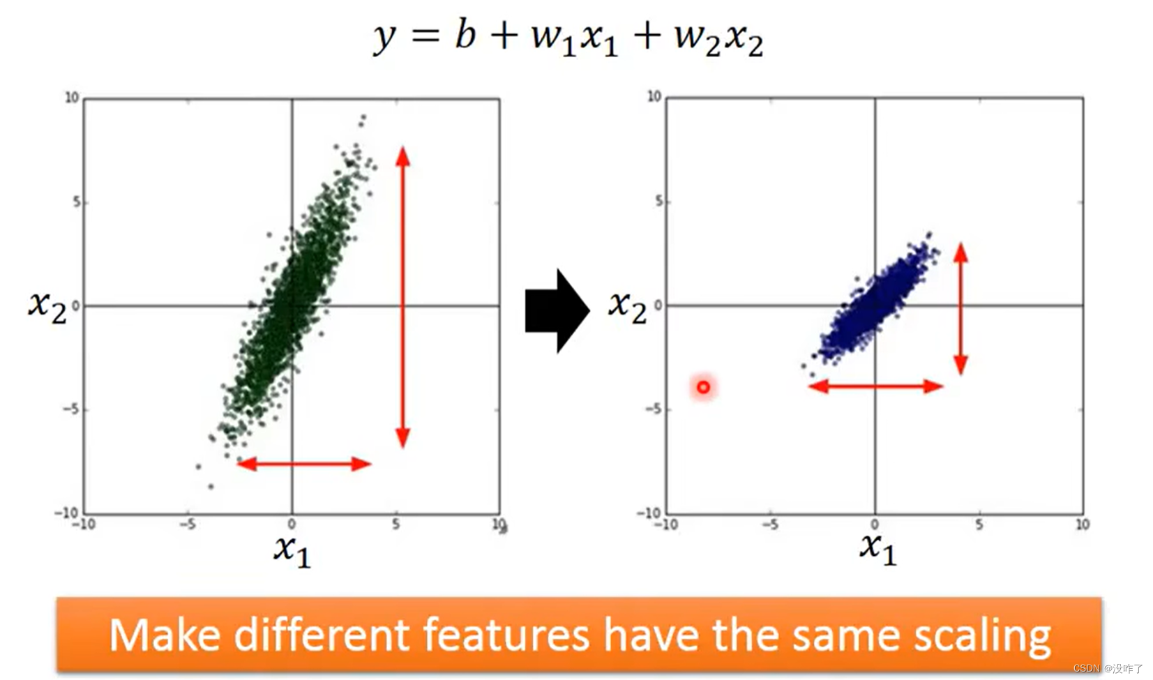 两个输入的分布的范围很不一样,建议把他们的范围缩放,使得不同输入的范围是一样的。