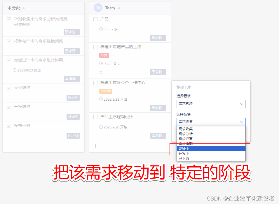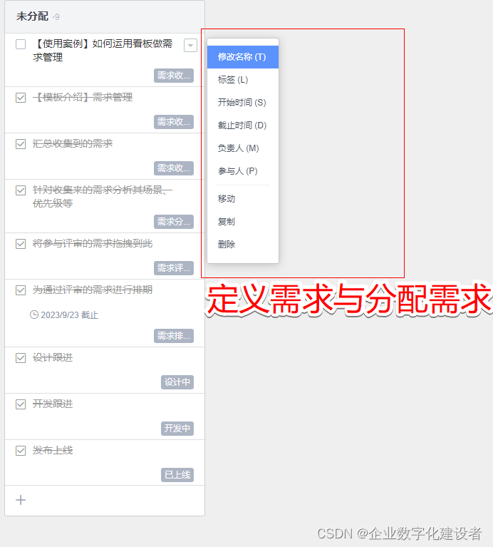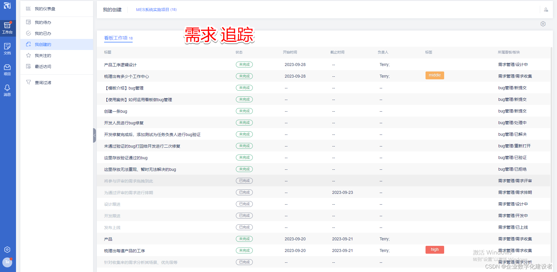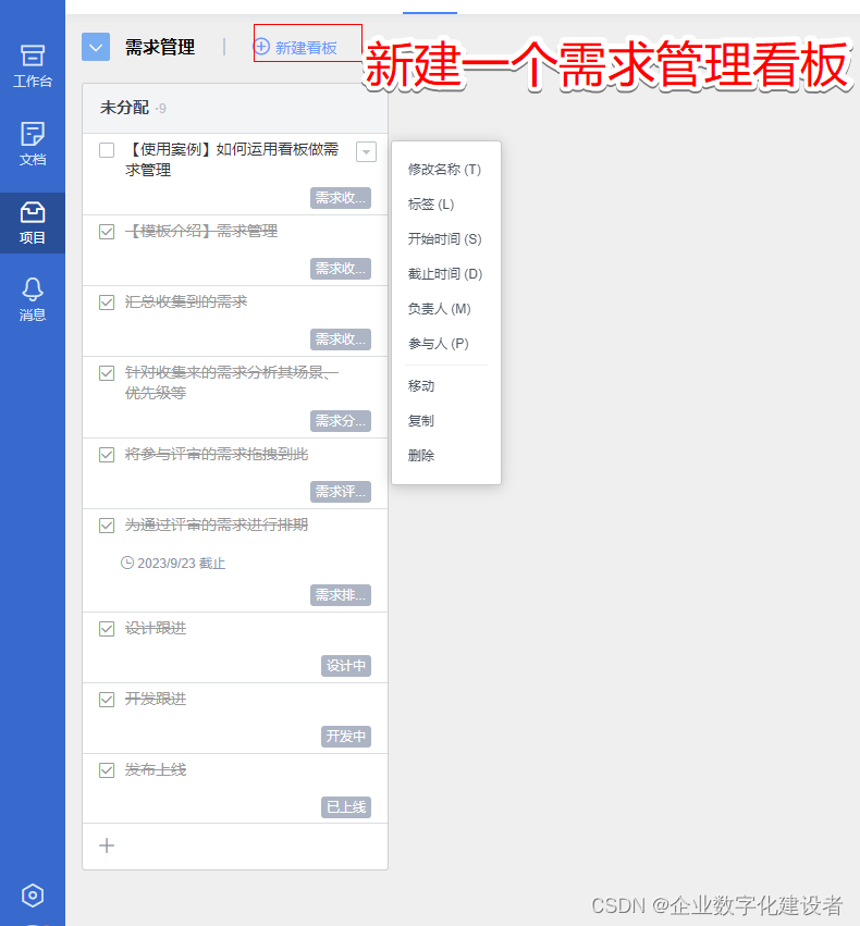 创建项目 --》 创建管理看板 --》 定义与分配需求 --》跟踪需求--》多人协同