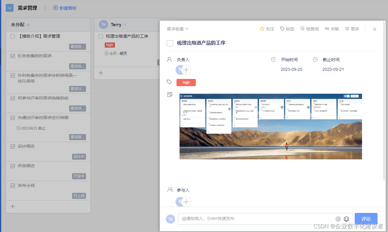 3.1 标准版:免费,人数上限是100人。标准版包含看板、文档、统计报表等功能模块,适合各类型团队进行工作任务协作;标准版并不支持敏捷开发相关功能。适合多行业小团队轻量、灵活的看板协作场景