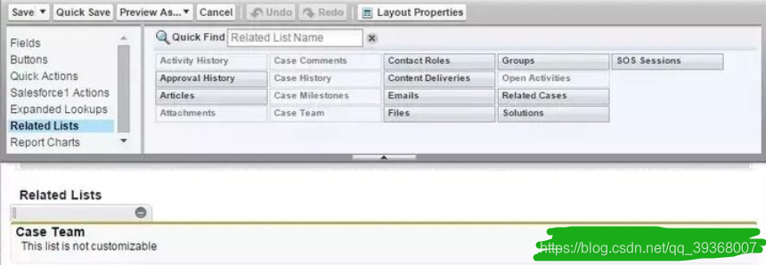 12. 从 Related List 相关列表中,将Case Team拖到相关列表下,然后单击保存 Save。