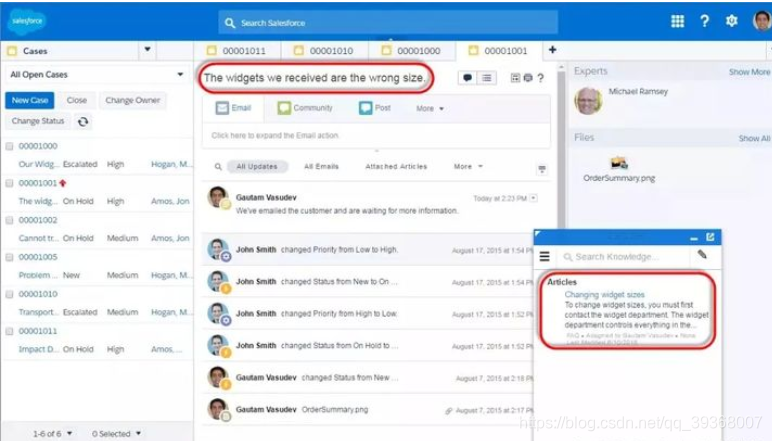 关于客户所有的信息都统一存储在一个Case中——账户、联系人、历史记录、产品……无论电子邮件交流、提醒任务还是知识库文章,都可以保存在Case中,