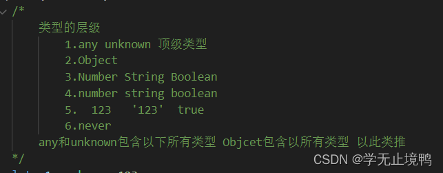 总结: 相对来说unknown类型比any类型安全,当我们遇到一个不知道的类型时,尽量使用unknown