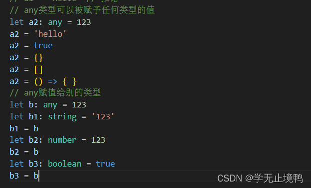 any任意类型 , 可以被赋予任何类型的值,也可以给任意类型赋值