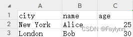 json = [{"name":"Alice","age":25,"city":"New York"},{"name":"Bob","age":30,"city":"London"}]