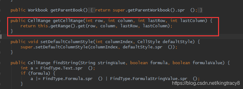 这个方法的索引是从1开始,即我代码中我不要表头,类似于定位,我从第5行开始,定位第7列,lastRow是count(也就是最第5行到最后一行),lastColumn是最后一列,是7,最终的结果也就是从第5行,第7列开始,这个表的第7列,最后一行,即第7列的所有数据: