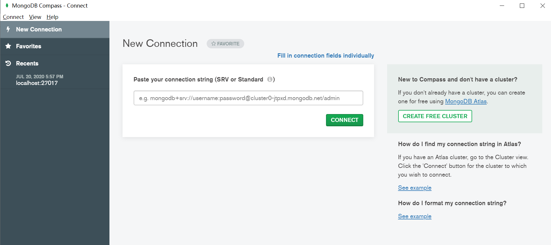 重启MongoDB Compass,启动成功
