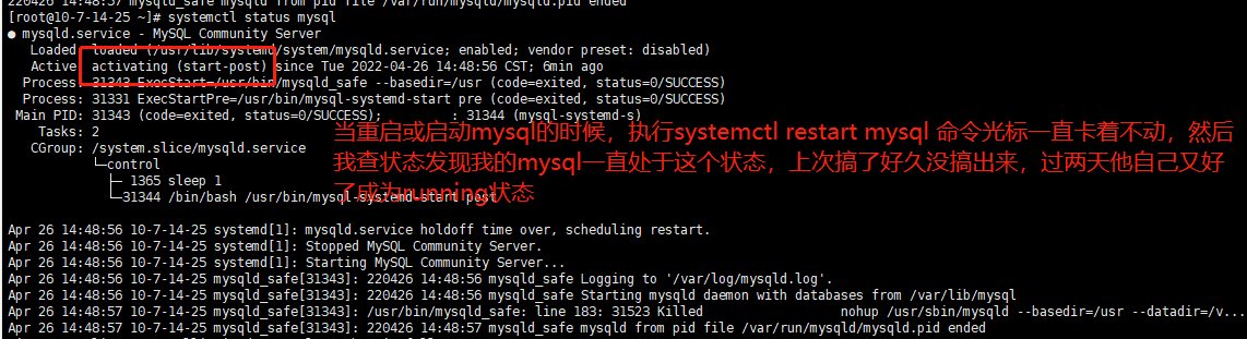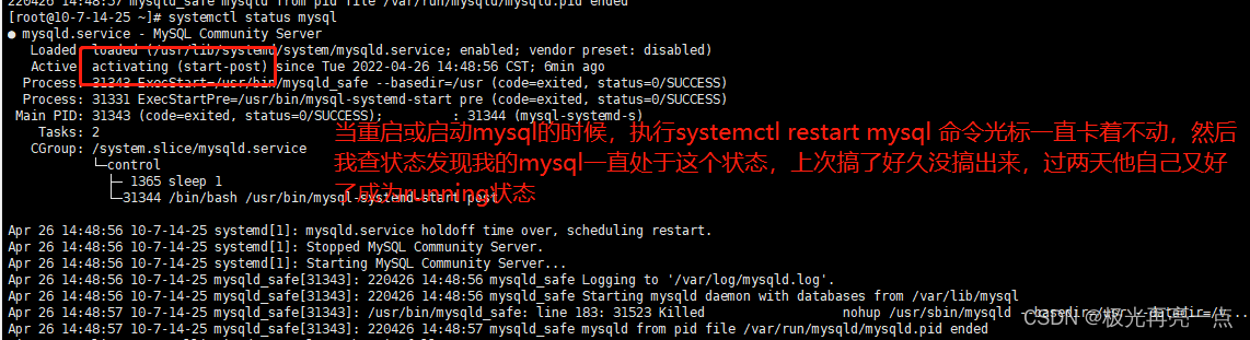 MySQL -当启动mysql之后一直处于Activating(start-post)状态