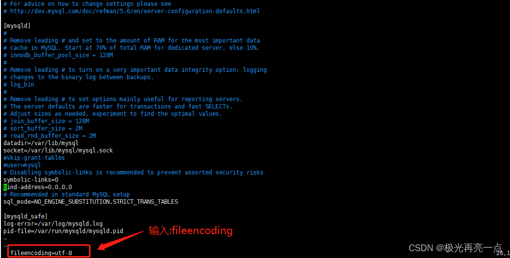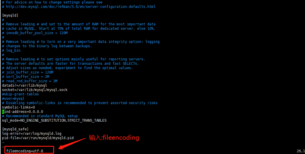1.我查了一下/etc/my.cnf文件的编码格式,不出所料果然是utf-8