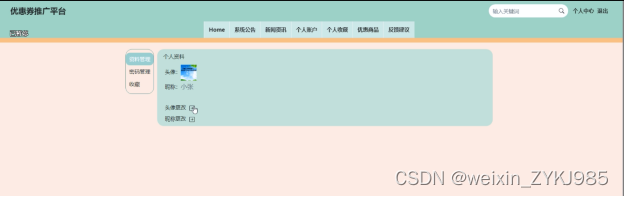 当用户点击右上角点击“个人账户”可以对个人的资料、登录系统的密码以及自己收藏的信息进行设置管理,个人账户界面如下图4-5所示。