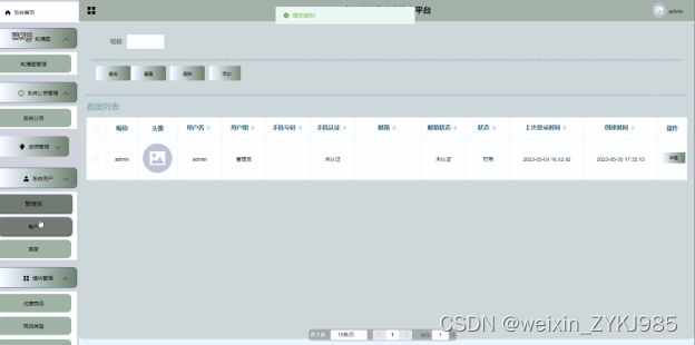 (5)系统用户:管理员点击“系统用户”菜单可以对系统中存在的用户进行管理,包含了管理员、客户和商家。