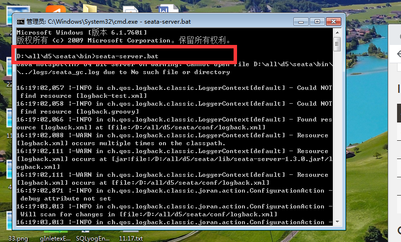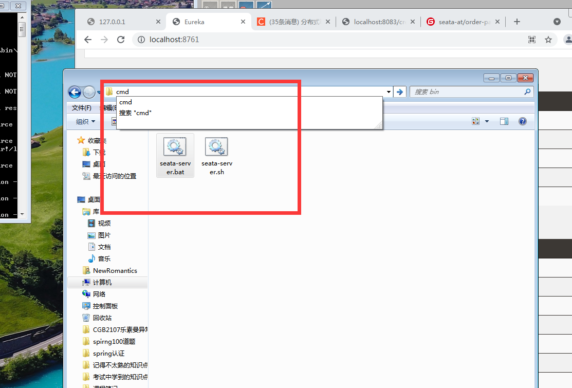 在seata文件夹里的bin文件里输入:cmd 打开小黑窗口