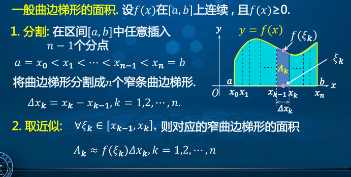 3. 一般曲边梯形面积的计算(思想:分割取近似,作和求极限)