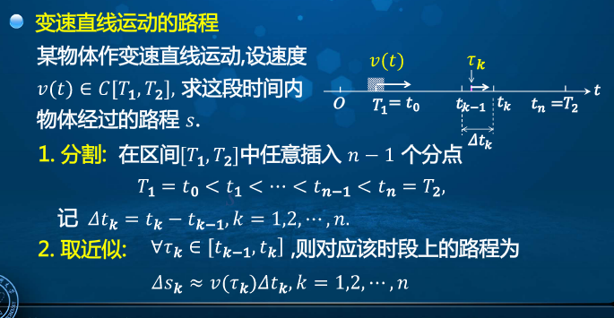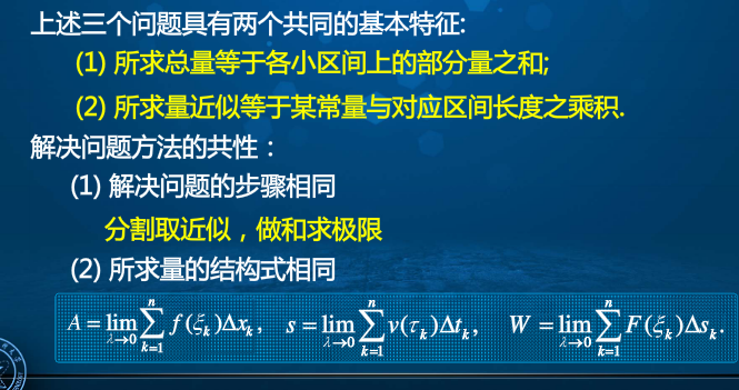 6. 定积分概念的引入(定积分问题的基本特征:所求总量等于各小区间上的部分量之和;所求两近似等于某常量与对应区间长度之乘积)