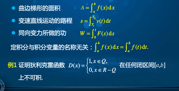 8. 定积分与积分变量的名称无关;狄利克雷函数在任何闭区间上不可积