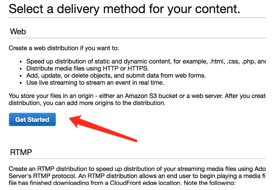这里我们使用Amazon’s CloudFront作为一个演示,CloudFront是一种内容交付网络服务。它为用户提供了一个全局分布式缓存,用于托管在其服务器上的文件。这减少了客户服务器上的负载,并允许CDN提供来自与请求者数据中心的缓存内容,当客户端连接到CloudFront的时候,其根据HOST头来判断客户端想要请求的域名,首先在Amazon’s CloudFront注册账号,之后按以下步骤建立自己的CloudFront: