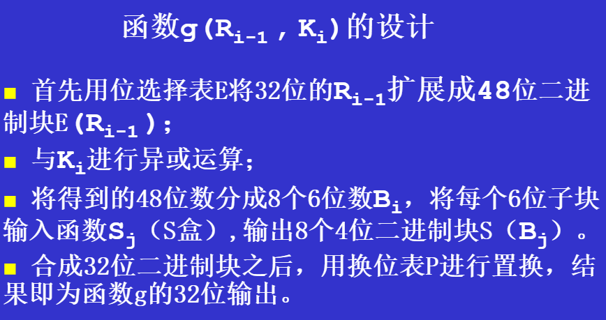 Kn是向第N层输入的48位的秘钥,g是以Rn-1和Kn为变量的输出32位的函数