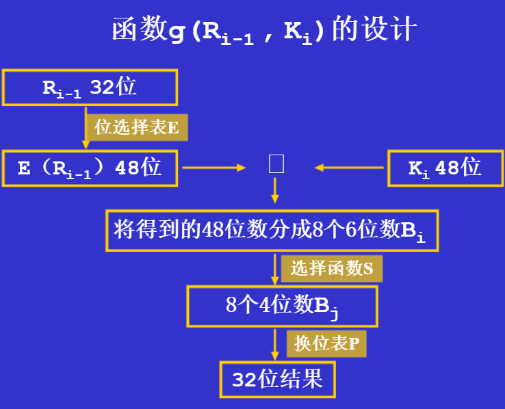 函数g由四步运算构成:秘钥置换(Kn的生成,n=0~16);扩展置换;S-盒代替;P-盒置换。