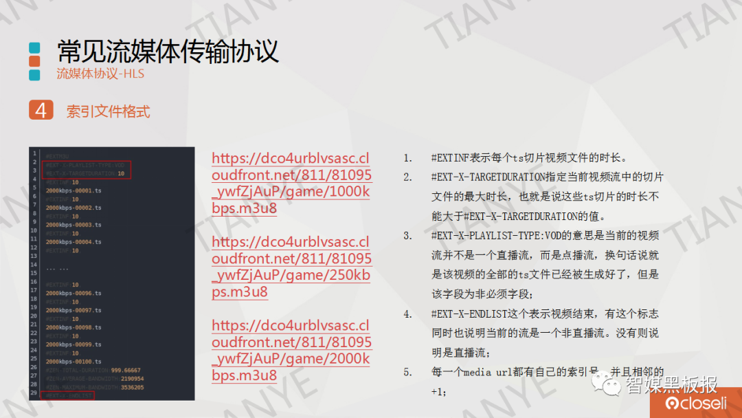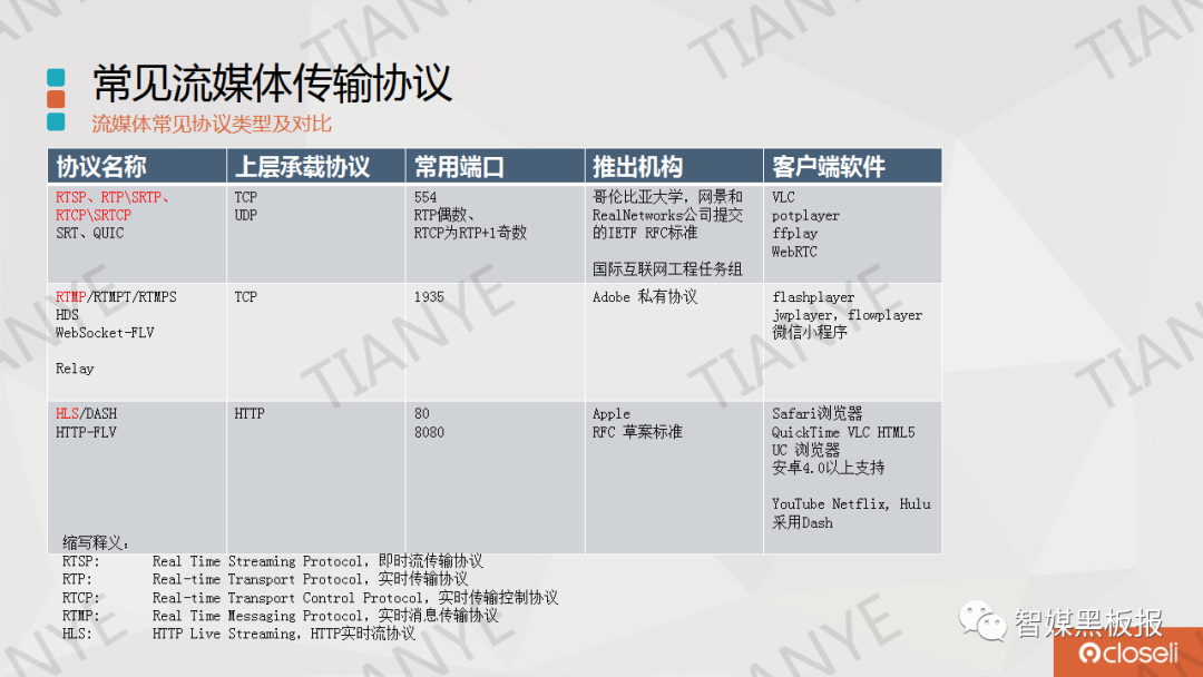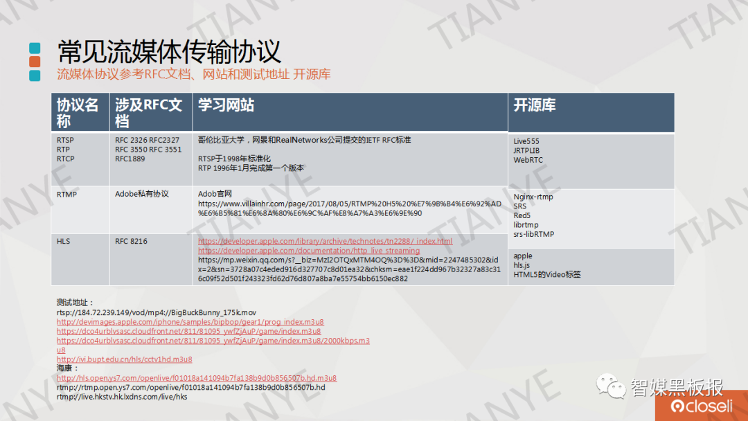 近期给身边同学分享这块内容时,写了点PPT介绍了下这些协议最基础和最重要的部分,共享出来作为大家学习阅读参考,同时也算流媒体传输协议系列的第一篇文章,后面不定期会就里面内容详细分享。