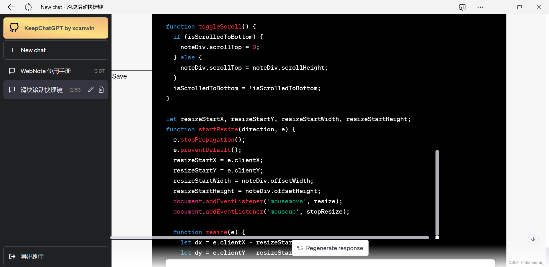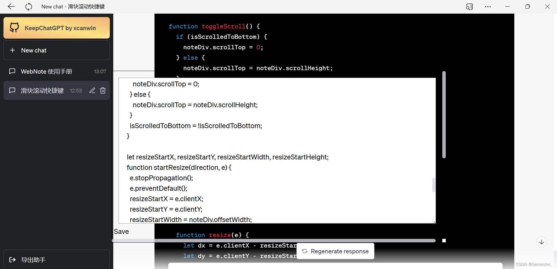 说明:该插件由我和GPT4.0 共同完成,其中笔记隐藏(CRTL+K下面会提到)是个bug,bug会使外面有个滑动的侧边栏,我利用这个bug让GPT实现了笔记的透明隐藏。说起来好玩,本来开发的目的是想把输入框放大到中央的,因为看起来不太舒服哈哈哈;然后发现不好搞,openai会检查用户的行为,从而有所限制;所以索性做一个临时记事本吧,应该值得注意的是这个临时笔记本可以在任何的网站打开并使用,但是不同网站的笔记内容不能迁移。